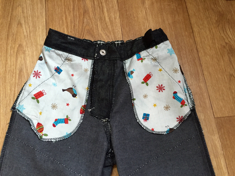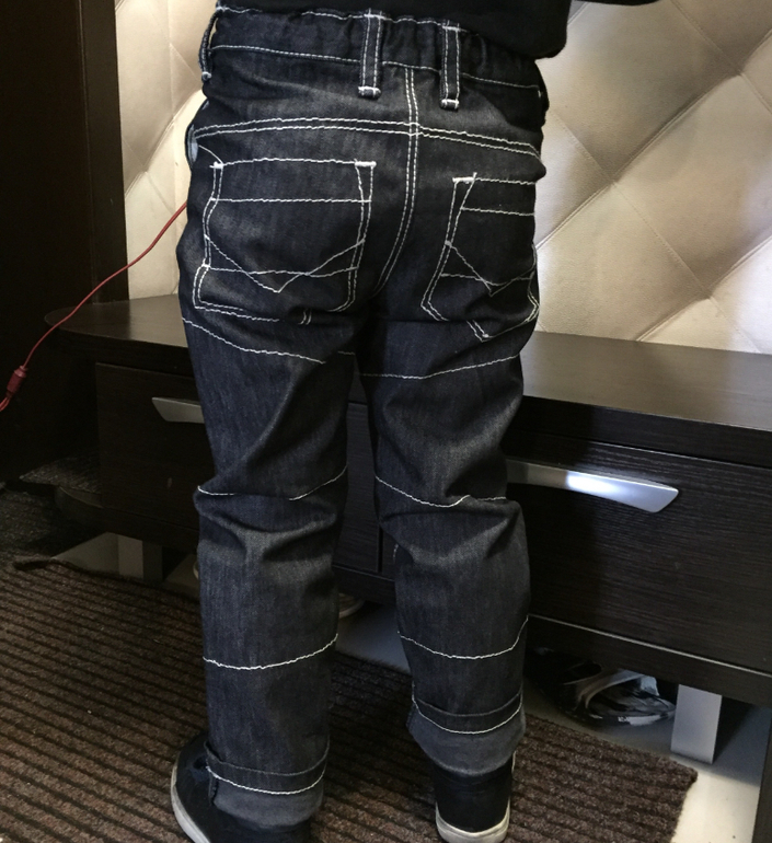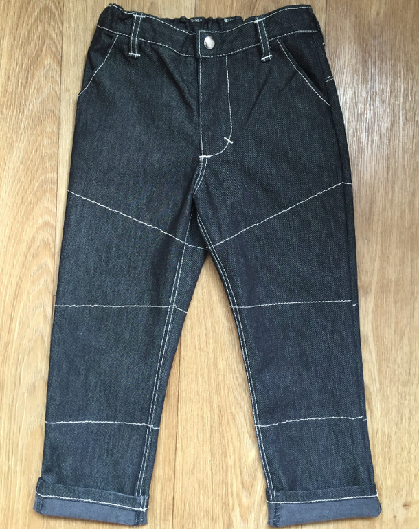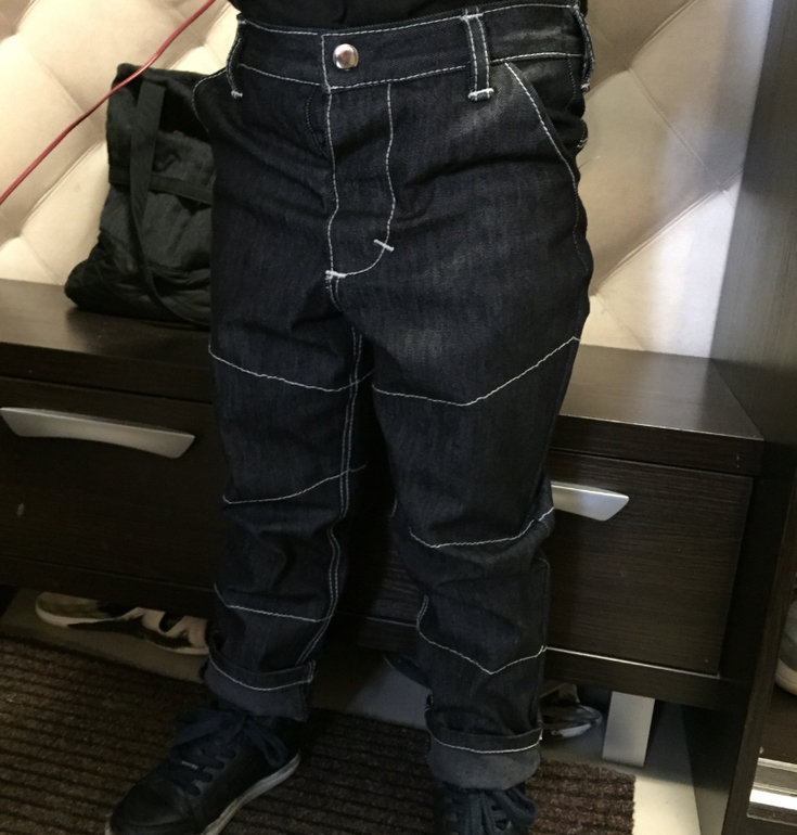 Джинсы тоже покажураз в кадр попали. Выкройка из Оттобре 04-13. На наши шикарные ягодицы подошла ширина аж 122 при росте 113.
