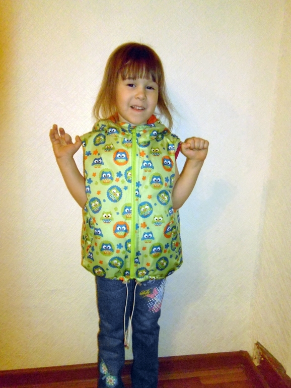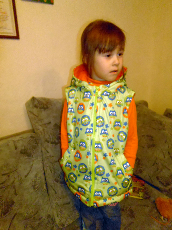 я тоже не понимаю жилеток) дочке не шью. у меня есть, купила потому что мужу понравилась.