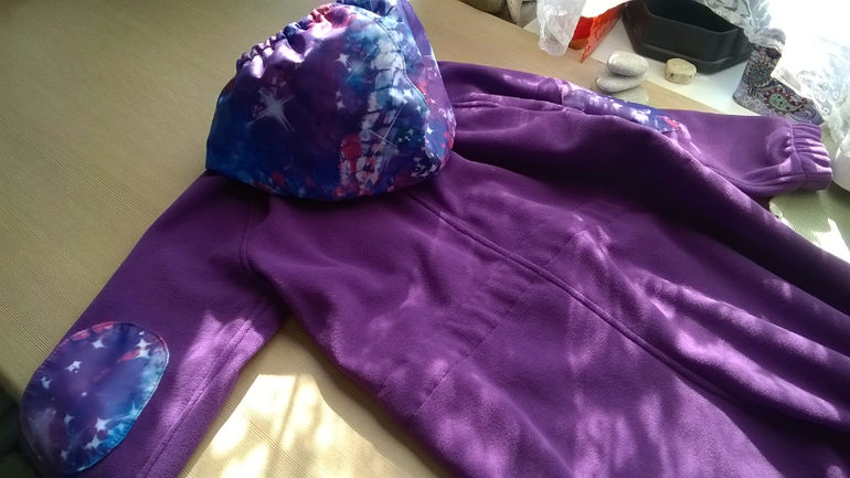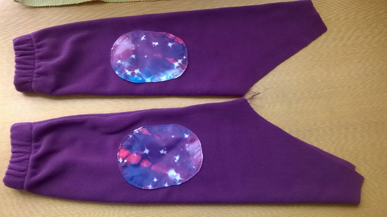 следующим выполнила рукава, сразу два. Сперва налокотники, вообще все детали четко прорисованы на выкройке, итак наметила, приколола, пришила.
