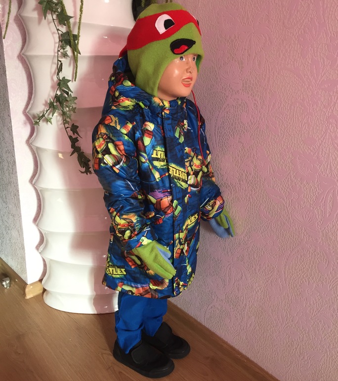 Ой красиво и ткань хорошо в изделии смотрится .а я на нее смотрела в картинке .никак не могла представить как в изделии будет. Шапка и варежки вообще крутецкие. На какой рост курточка .сколько плащевки ушло.?