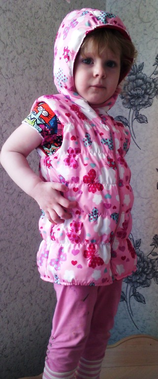 Шьем детямДобрый день! На одном дыхании по МК Марии сшились 2 жилеточки дочке.Обе на основе куртки из Оттобре 2013-1 модель 12, размер 98 на рост 92см.( возраст 2года 3 месяца) Верх дюспо салатовая и принт "бабатьки", Альполюкс 100.И подробнее под кат