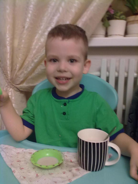 Это сын в зеленой,уже замазал)Кстати,идея с термотрансфером пришла позже,чем я ее пошила. На этом фото его еще нет