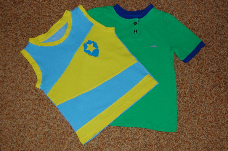 Футболочки для сына. Ткань кулирка,выкройки из шкатулки. На зеленой,застежку поло делала первый раз по видио с ютуб,почему-то не посередине мне она кажется. Так же на ней первый раз пробовала приклеить термотрансфер(это серое пятнышко правее от застежки