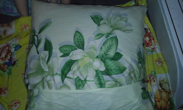Из остатков той же ткани сшила наволочку на подушку на диван - и тут накосячила - карман получился внаружу - но мне так было впадло все переделывать что я откровенно говоря забила. С второй наволочкой и остальными на наш диван с подушками надеюсь не протуплю. Надеюсь остатка хватит и на вставки в покрывало на диван - которое пока что в процессе.