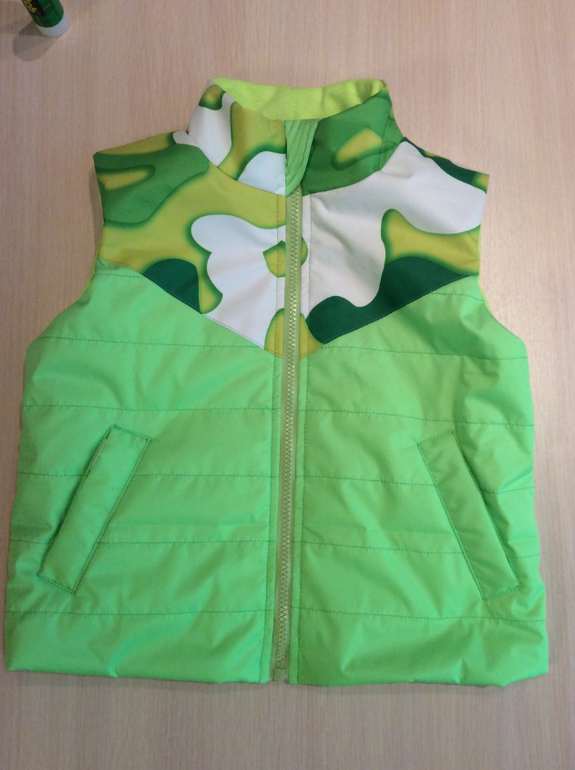 Сшилось две жилетки, утилизировала остатки плащевки, на медведях сзади вообще из кусочков собирала. Одну отдам племяннику, одну оставлю сыну.