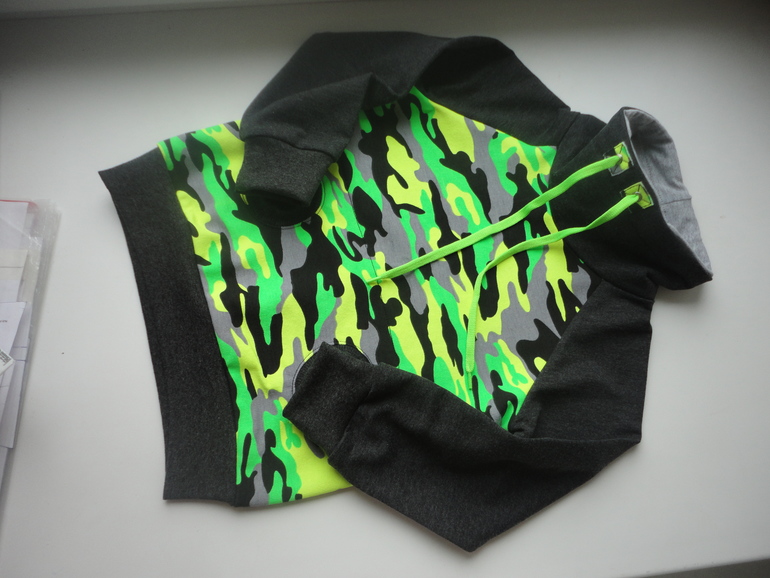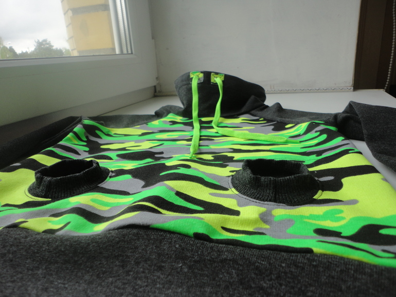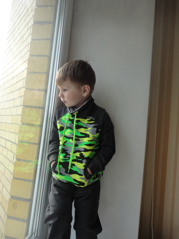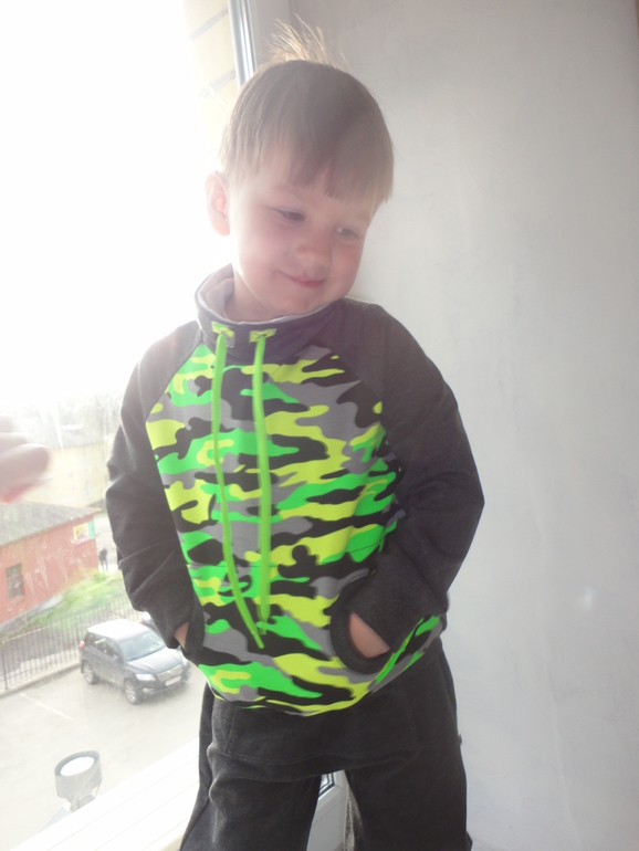 Сшила сыну толстовку. Из футера 2х нитки петля, выкройку взяла Оттобре 2014-1, расширила на 1см.