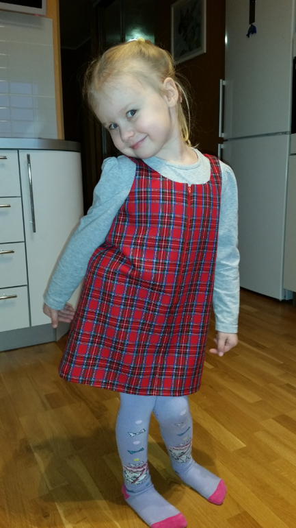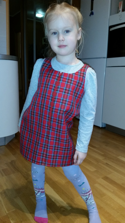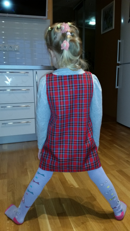 А заодно покажу небольшую работку для дочки. Перешила из своего сарафана ей сарафан. Застежку сделала спереди, чтобы сама в садике одевалась, очень удобно. Модель сарафана из оттобре, не помню номер, если надо кому-то дома гляну. Но я его очень заузила, нам широко было. и застежку перенесла со спинки на перед. На подкладе обычная подкладочная ткань, чтобы не обрабатывать обтачками, мне так удобнее.