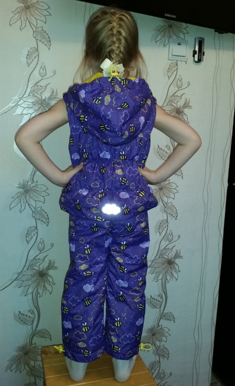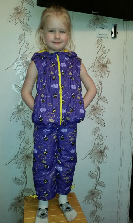 В жилетке утеплитель 50 альполюкс, подклад флис. Штаны: совсем тоненький утеплитель, даже меньше половины от 50-ки, просто для объема, на подкладе обычная подкладочная ткань.