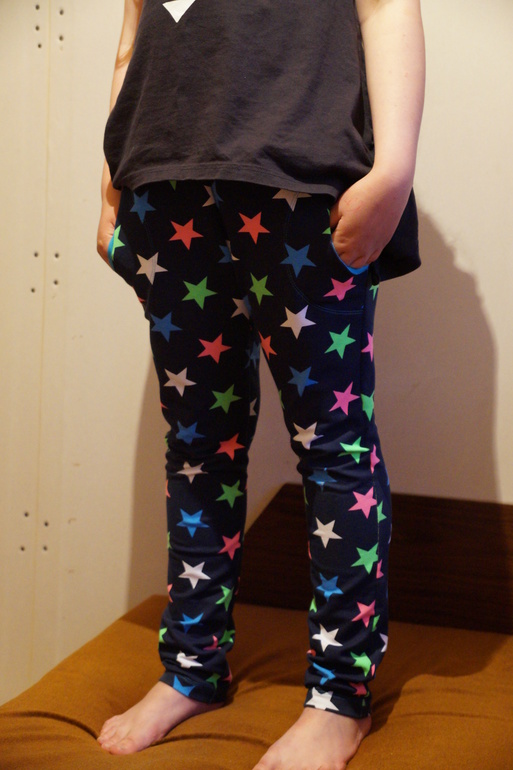 Шьем детямСшила наконец-то штанцы для Кати из футера со звездами. Что-то синтетики много в футере этом. Появились катышки после первой носки в местах трения. Но штанишки всё равно яркие и веселенькие - мне очень нравятся. Выкройку брала из отто 1/2013 мод.37. Ширину брала р.152 на наш 146, длину по размеру. Расширяла внизу, т.к. ножки у нас основательные, крепенькие. Талию поднимала (у нас высоко расположена). Вообще выкройка хорошая, особенно для худеньких. На Кате тоже понравилась (не облегает там, где не нужно). Карманы обработала трикотажной бейкой (матовой стороной). Итог: ничего не сползает, не врезается, не висит и можно одевать с любой обувью.