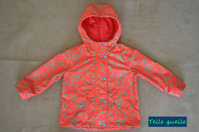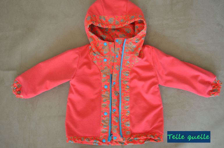 Куртка - выкройка Оттобре 1/2013 модель 12 размер 92/98. Из изменений - капюшон сделала двухшовный, основу брала 92 размера, но рукава, длину спинки и полочек удлинила до 98 размера, немного расширила куртку внизу, линию низа спинки скруглила и опустила ее на 1-1,5 см относительно полочек, добавила внешнюю планку+кнопки, в рукава вставила внутренние манжеты на резинке, спинку порезала для вставки светотражающего канта (коего не оказалось, брала сво ленту и оборачивала шнурок, связанный крючком из пряжи Vita Coco). Краманы с клапаном и в рамку, добавила в подклад подборт, подклад без боковых швов, вставила в капюшон резинку и резинку по низу куртки.