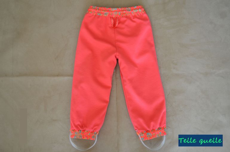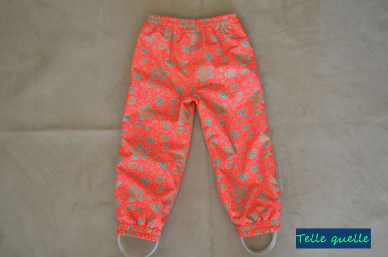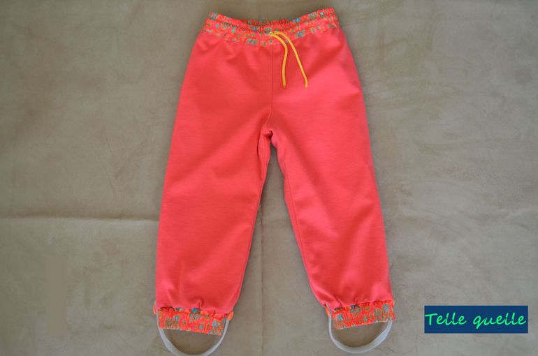 Прогулочные штанишки. Выкройка Оттобре 4/2014 модель 18 размер 92, на наши 86. Из изменений - делала без карманов, добавила пуговицы на манжетах, для штрипков, ширину манжет и пояса увеличила где-то на 1 см, и в пояс с изнаночной стороны вставила шнурок, но это лишнее (в самом конце испугалась, что будут падать, ребятенок спал, будить примерять не стала, а дошить хотелось). По выкройке - очень низкая посадка, я бы подняла еще на 2-3 см (итого нужно поднимать где-то на 3-4 см). Мы правда в памперсах. Фото.