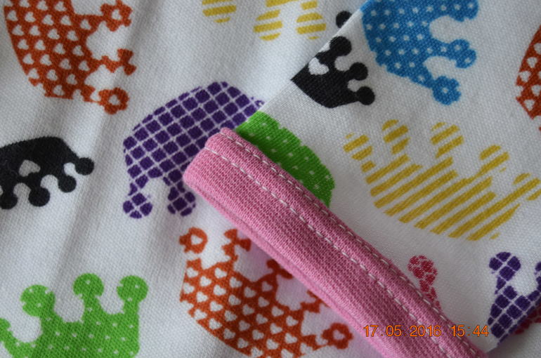 Выкройку уже брала с BurdaKids 2016. Модель 623, р-р 74. Ткань кулирка ХБ, отделка и бантик- белая рибана ластик. Бейку пришивала на машинке двойной иглой, бантик руками )