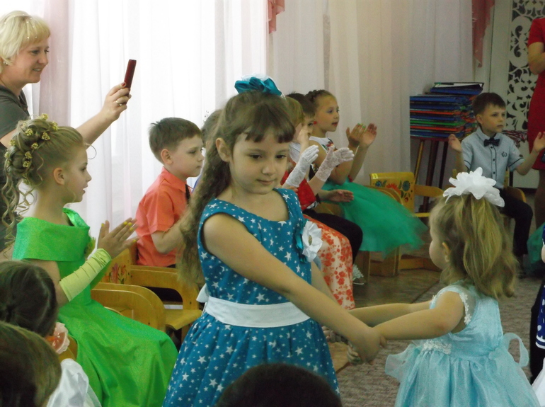 Наверное она выглядела скромно на фоне девочек в платьях в пол из органзы, но вот честно скажу, за 11 лет материнства меня уже тошнит от этой блестящей синтетики...