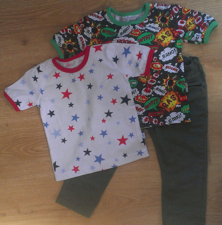 Я микки тоже сыну покупала изначально, но как ткань пришла - засомневалась в ее мальчуковости и решила вначале дочке сшить, но думаю и сыну футболку все равно сошью такую, пусть одинаковые ходят))