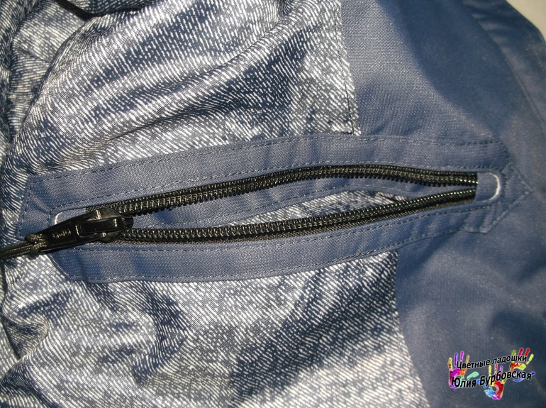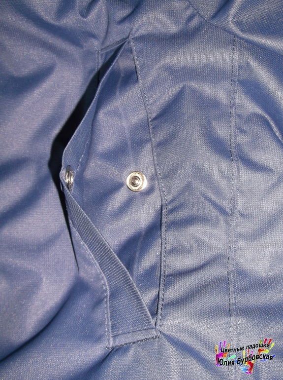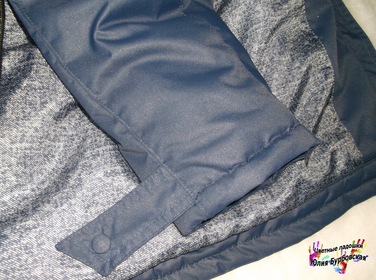 Рукав тут двухшовный. Пата с кнопкой и внутренний трикотажный манжет на "юбочке" (что-то забыла его сфоткать). Все кнопки, кстати, обтянуты этой же мембраной.