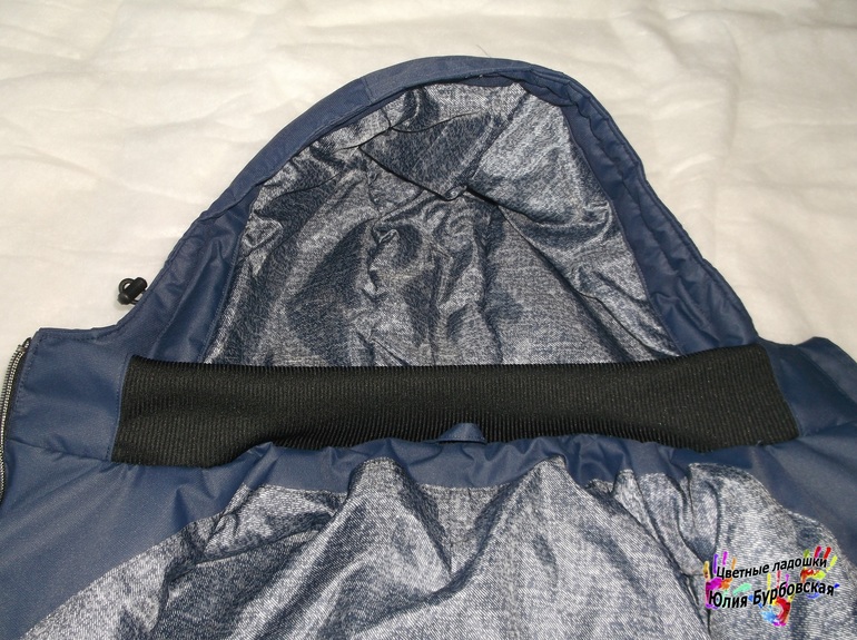 Капюшон втачной, воротник из трикотажного подвяза. В капе тоже утяжка.