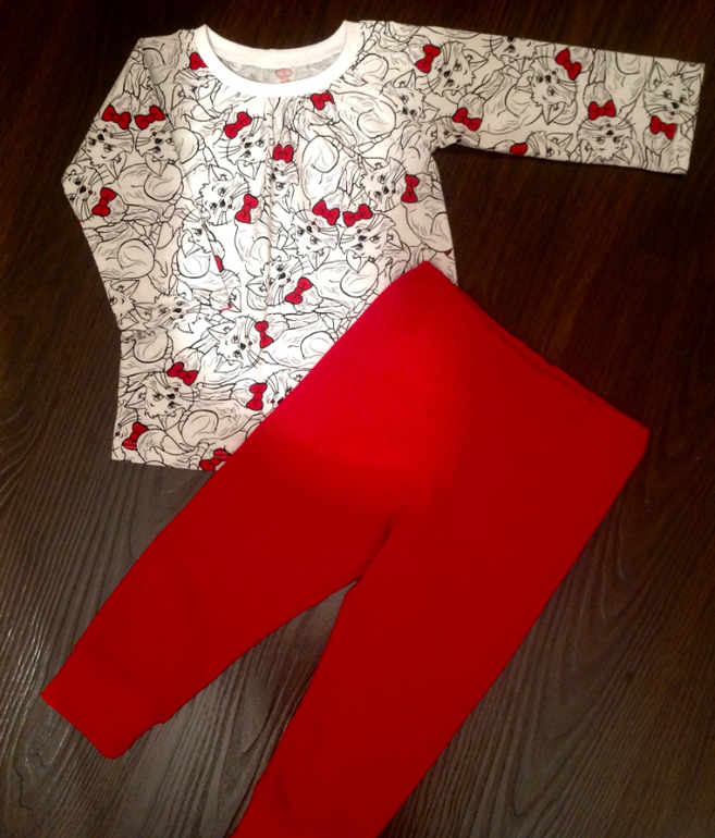 Сначала пижамки. Напомню, что все детские выкройки из моего единственного номера Оттобре 4/2014! Первая из копеечной пакистанской кулирки за сто с чем-то рублей. Горловина обработана обтачкой, штанишки просто на резинке. Кулирка эта, надо сказать качества 💩, но на пижаму сойдет 🙈