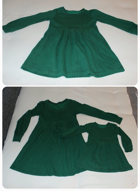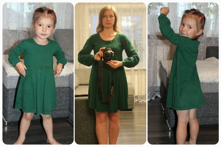 А это платье сшилось дочке из остатков кулирки от моего платья и получился Family Look. Только дочке сделала еще карманчики. Выкройка 4/2014 мод.13, изменила рукав на простой.