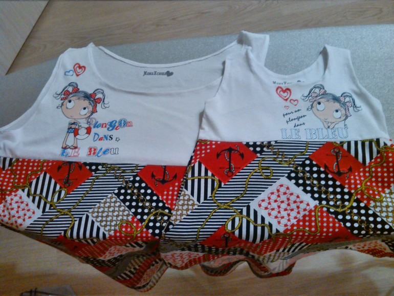 Шьем детямТуники мне и дочке, кулирка х.б. Крой полностью мой, термотрансфер.
