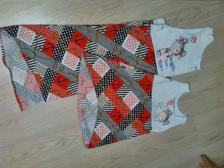 Туники мне и дочке, кулирка х.б. Крой полностью мой, термотрансфер.