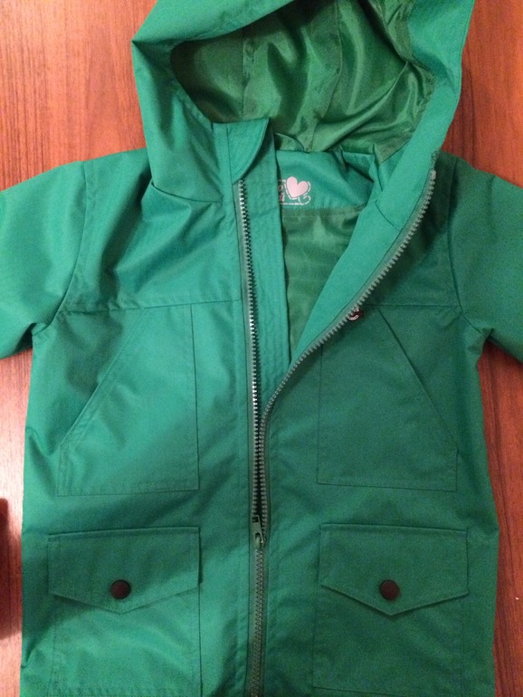 Ткань мембрана в елочку(почему зеленую схватила-не знаю,у меня сын серо-голубоглазый,и ему зеленый не идет совершенно)).Подклад- обычная таффета,но так и задумывалось. Нужен был ветровко-дождевик,на дождливые дни. Флис-жарко,а куртку мы будем надевать на длинный рукавчик.