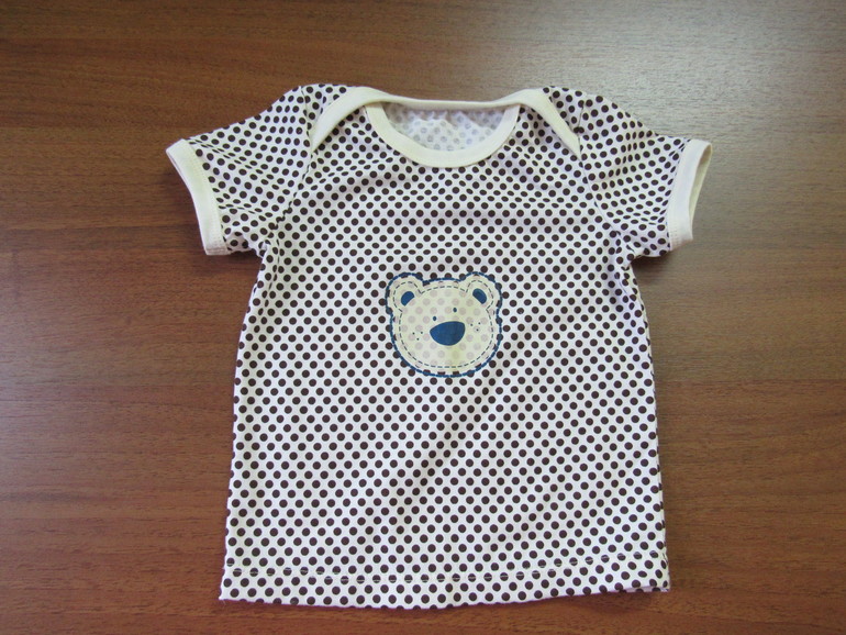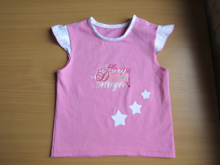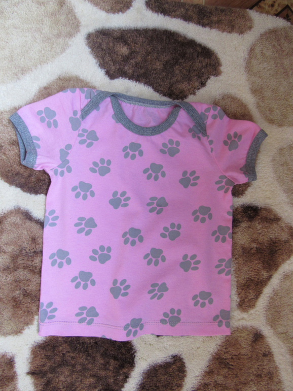 Еще одна футболочка по этой выкройке, горошек немного просвечивает через термотрансфер.