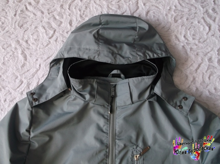 Капюшон у меня получился с небольшим цельнокроенным козырьком. Сделала его съемным на молнии, молнию спрятала под планкой.