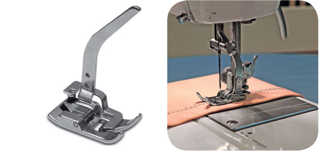 Но обязательно нужно купить иглы для трикотажа(для толстого иглы "джерси",для тонкого и среднего "стрейч" и суперстрейч"),нужна лапка для трикотажа,стоит около 200 р. Выглядит вот так: