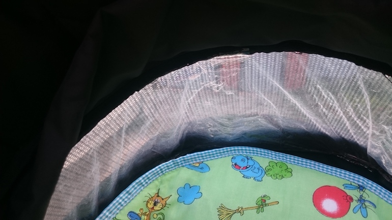 Я сначала хотела как всесезонку использовать. А осенью получилось что дождь / ветер 💨 через сетку всё. А там боялась чтобы голову не надуло. Вот и зашила. Ни сколько не жалею что так сделала. Вышла из дома, дождевик не взяла, дождь пошёл. А у ребёнка всё хорошо.