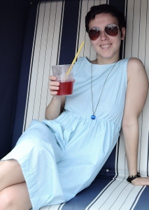 Это платье было второй вещью, которую я сшила, тогда год назад это было для меня очень сложно. Оно состоит из многих частей и я никому не решусь показать, что творится на изнанке))) Модель из Burda 5/2014, ткань плотный хлопок.