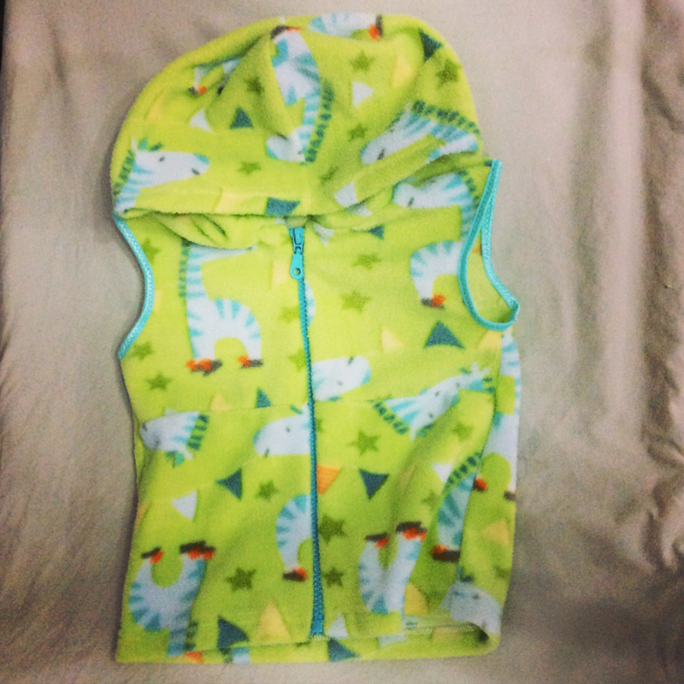 Жилет из флиса собирала из остатков, выкройку делала сама по трикотажной жилетке племянника.