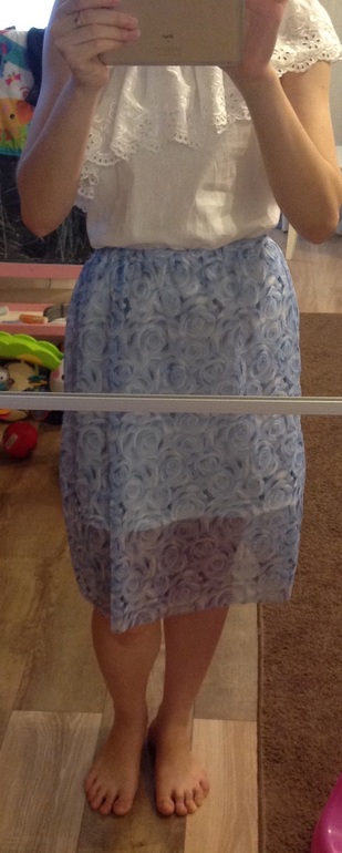 Новичкам. Мои первые работыне могу понять что не так с юбкой( так понравилась эта сетка в розу, юбку сшила, а она на мне не очень(( как со стороны вам кажется?