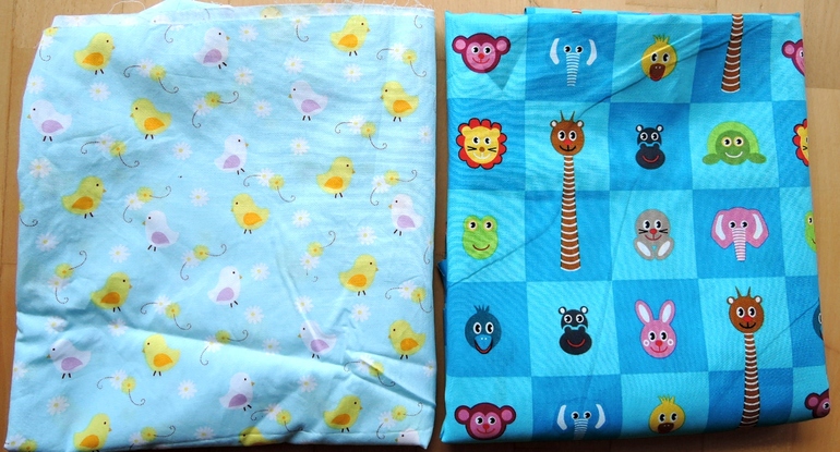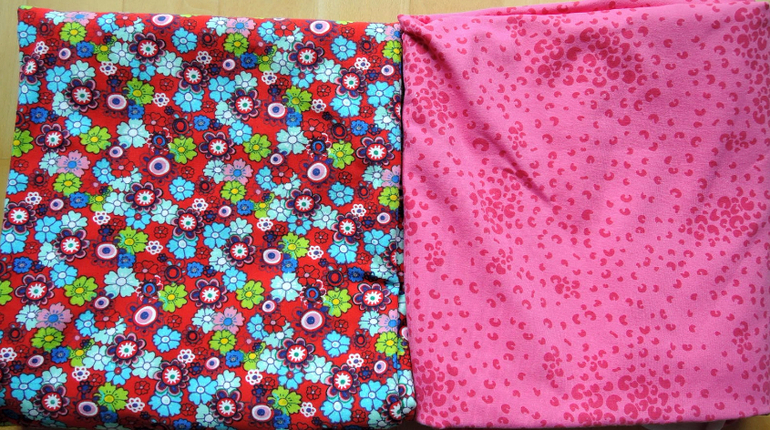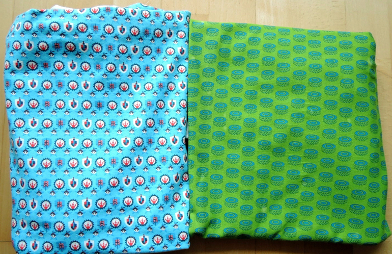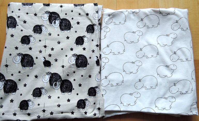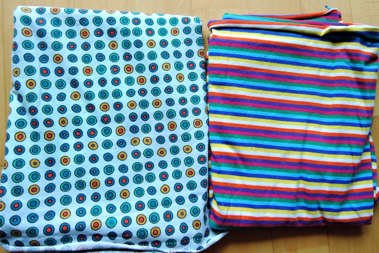 Обе ткани хлопковый трикотаж, продавались отрезком по полметра, за 4-5 евро штука. Производитель не указан.