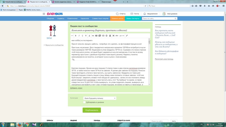 Простынь на резинке. Для стандартного матрасика в кроватке 120*60см потребуется кусок ткани размером 100*160. Вырезаем в углах квадраты 19*19 см. Сшиваем эти линии отрезов чтоб получился уголок, который будет надеваться на угол матрасика. А за тем по всему периметру простыни с двойным подгибом ткани вшить резинку. Надеюсь понятно написала)))если не понятно, в интернет куча ссылок с пояснениями.