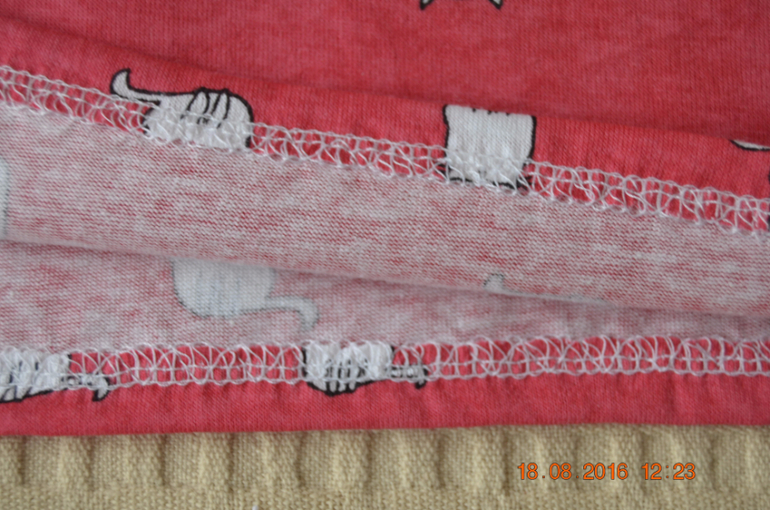 Низ обработала оверлоком, подвернула и прошила пунктирным зигзагом, т.к. мне лень было менять иглу на двойную, и крутить колесико на шпульном колпачке (для ослабления нити). Интересно, все так крутят его или я одна так мучаюсь ?! )