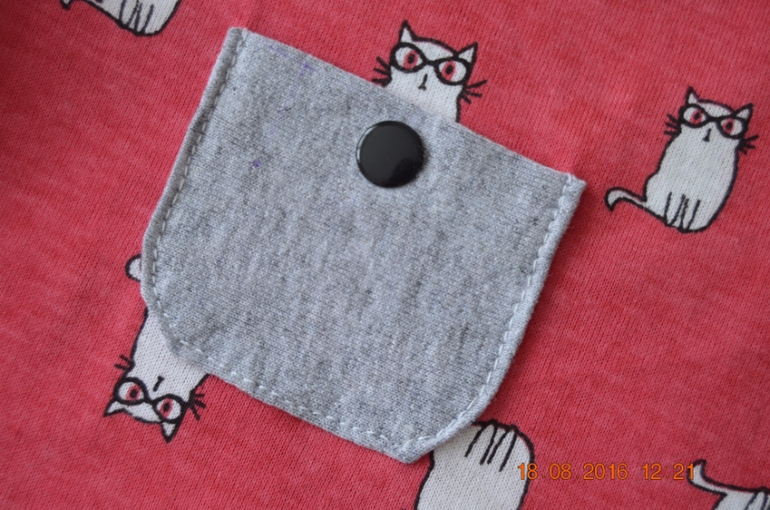 Кармашек выкроила поперек долевой, чтобы верхний край не растягивася, если хозяин решит часто пользоваться им. Кнопка черная стоит для декора.