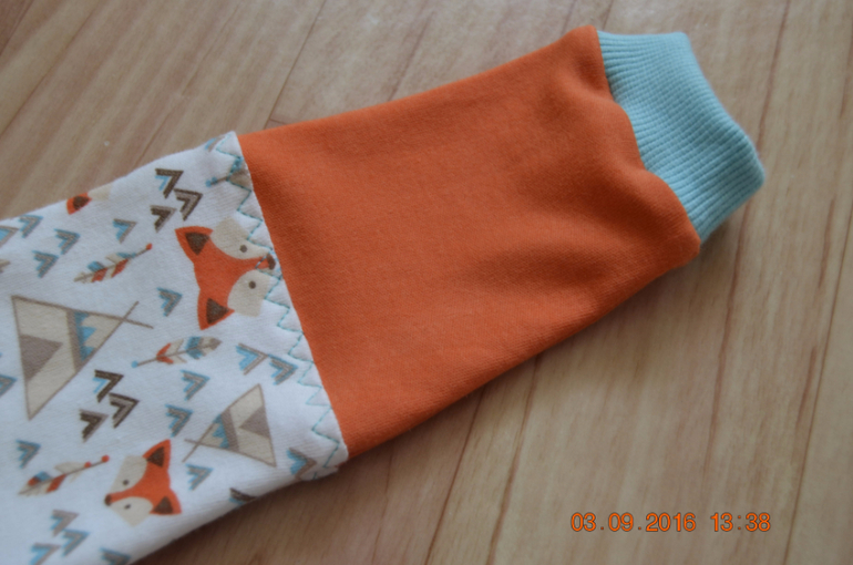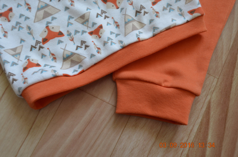 Низ, манжеты, горловина - рибана. Нитки в овере поленилась менять, т.к. параллельно шила еще штаны бледно-салатового цвета, их покажу в конце )