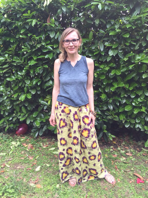 Кокетка обязательно нужна, чтобы складки не шли из талии и не увеличивали живот . Очень аккуратно выбирайте материал , я это поняла со временем . Вот та же самая модель, только макси из льна на мне