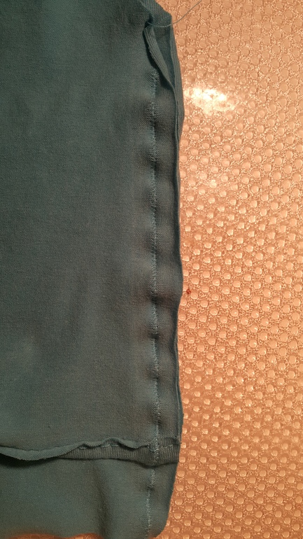 По процессу у меня как всегда проблемы с шитьем ровной строчки (и это только в трикотаже! и именно когда надо бейку пришивать). С бейкой тоже не лады;) Может знаете хороший мастер-класс для чайников, как правильно пришить бейку особенно на углах. И как вообще обрабатывать трикотажные вещи на обычной машинке. Может есть более красивый способ? Например рукава я обшила по-разному, но не знаю куда спрятать швы... Может надо было сначала сшить бейку в кольцо?