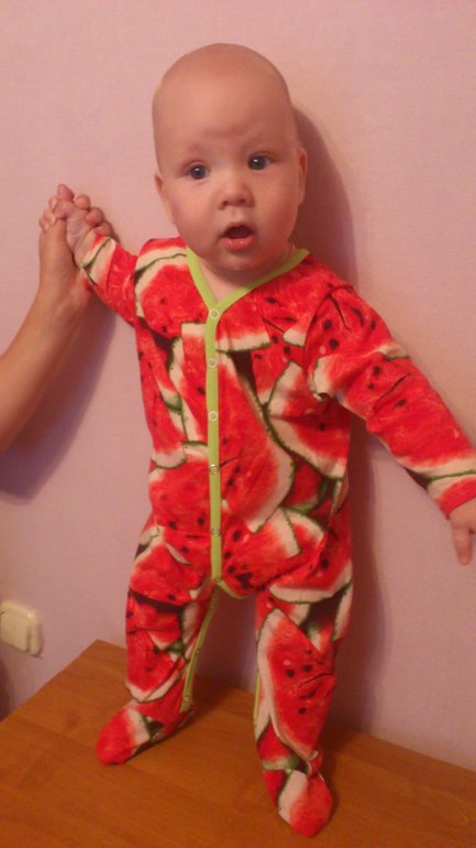 2. Выкройка та же но я её немного обыграла. Убрала клепки между ног и увеличила до 80 размера. Состав кулирка отделка рибана.