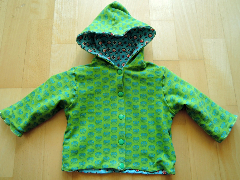 Кофточка из Ottobre 1/2014, модель 8, размер 56. Она двухсторонняя, из плотного трикотажа, пластиковые кнопки. Изменила немного модель, она в оригинали застегивается сильно внахлест и на пуговицах.