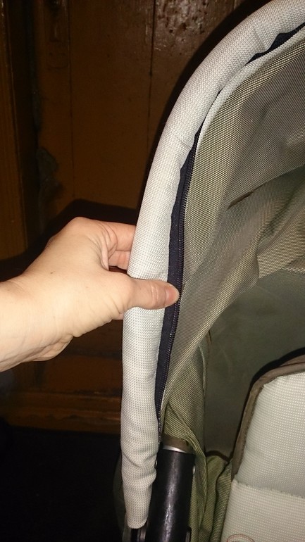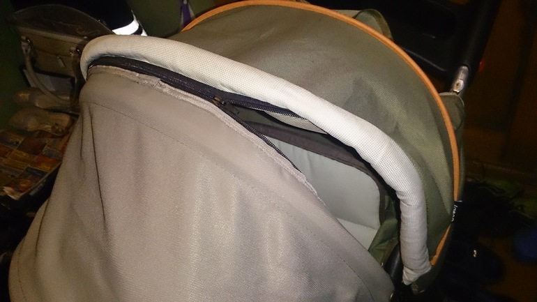 Чтобы облегчить себе работу по покрою, купила готовый капюшон от другой коляски, подходящий по цветовой гамме.
