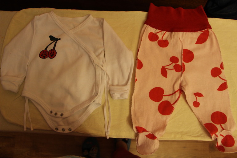 Шьем будущему малышуУже прошел почти год, как шила эти вещи, благополучно и с удовольствием относили, подготовлены на выписку и на дальнейшее ношение, пожалуйста, фото под кат: 1. комбинезон, шапочка, пинетки, размер 56, добавлены манжеты в штанинах и рукавах, велюр, подклад кулир, выкройка с сайта 2. ползунки, выкройка с той же Шкатулки, кулирка, р-р 56, боди покупной, я только вишенки нарисовала 3.Шкатулкакомбинезон-кокон размер 56 примерно, шился без выкройки, подгоняла по размерам пупса с прибавкой, планировала носить примерно 3 месяца, так и получилось, но если бы ребенок был крупнее, не хватило бы, верх плащевка - без названия в местном магазине, подклад интерлок, утеплитель синтепон 100, спасибо за просмотр, критика принимается