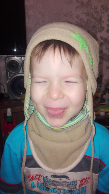 В основе шапка-шлем Оттобре на размер 52 см,выпуск не знаю, скачана с просторов интернета. Еще когда перевела выкройку,бросилось в глаза,что мелкая она какая-то....пол головы на улице. Потому подкраивала этакий козырек на лоб,изменяла линию вокруг лица. Сшита шапка из толстого флиса, подкладка-типа микрофлиса,вокруг лица-кашкорсе. Собирала шапку из кусочков) Теперь думаю-а на какую температуру получилась шапка? Девочки,у кого детки носили подобные изделия,подскажите! Ну, и ещё пара фоток