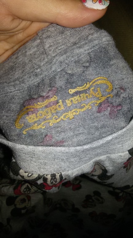 Я бы такой же трансфер (если он есть конечно, ну или заменить каким то) наклеила на прямоугольник из той ткани, из которой у Вас отделка (серый меланж) и пришила бы прям по периметру этого прямоугольничка на это место. Это на мой взгляд будет выглядеть даже интереснее, чем просто на изнанку наклеить.