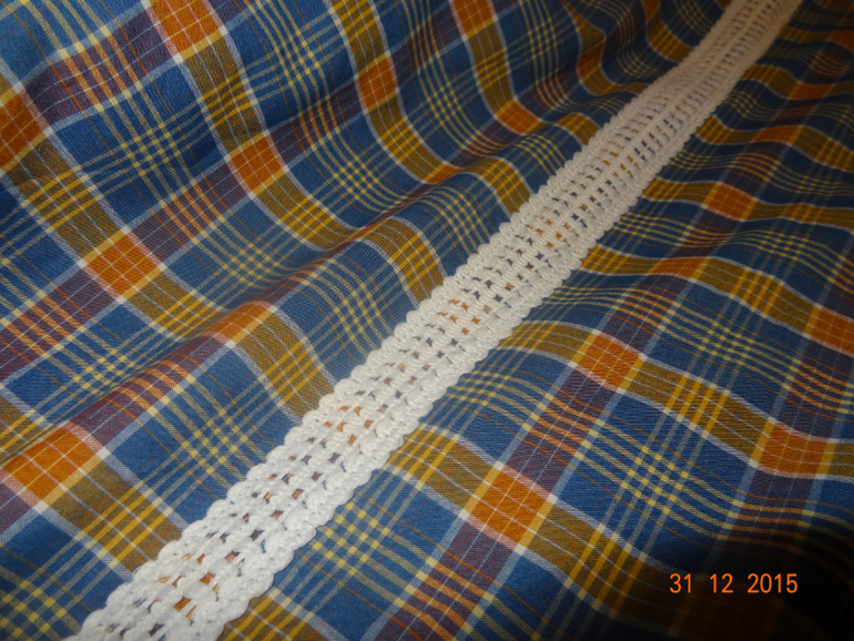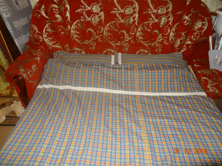 пододеяльник размером 200х210 см, простынь 220х220 см, наволочки 50х70 см, украсили кружевом.