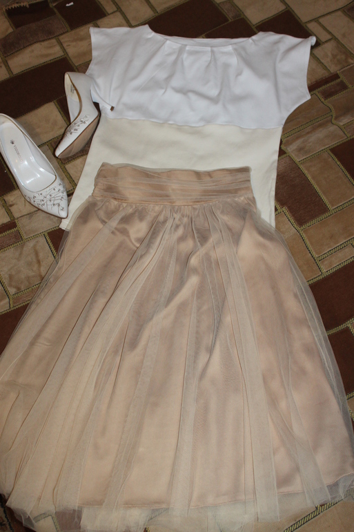 Тут целая история с раскроем юбки...Изначально задумывалось сделать юбку солнце, но когда пришла в магазин, то выяснилось, что широкого фатина нет, а есть 1,4м