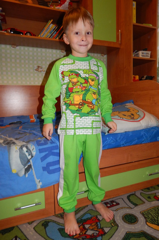 3) пижамка. использован китайский купон из рибаны-ластика и кулирка х/б, на окантовке рибана. Выкройка пижамы с сайта шкатулка. Размер 110 + по 7 см рукава, штанины и кофтейка в длину, ширина оставлена стандартной. Худышу штаны в итоге широки...