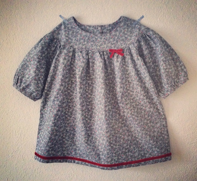 сшито из плотного корейского хлопка, мелкий цветочный рисунок. Низ украсила яркой контрастной бархатной лентой и сделала маленький бантик спереди (дочка путает, где перед и зад:) Размер 100. Бархатную ленту покупала на алиэкспрессе, вот у этого , качество отличное. Корейский хлопок - на gmarket.