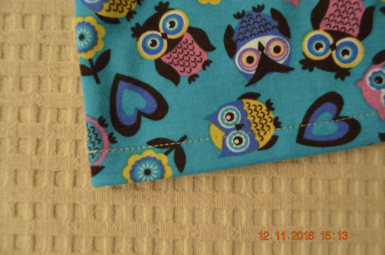 низ платья подвернула и отстрочила одной иглой.